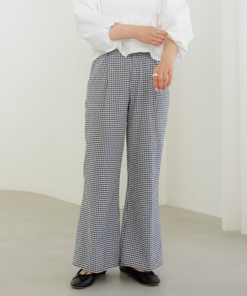 ■デザインルーズなシルエットが可愛いギンガムフレアパンツ♪ゆるっとしたサイズ感ながら膝回りをすっきりさせたフレアシルエットで脚長効果抜群の一枚です。膝の位置を高めに設定し、膝下が長く見えるところがデザインポイント♡落ち感のある生地で扱いやすいのも◎ウエストサイドから後ろにかけてゴムが入っており、着脱も着心地も楽ちん♪旅行やピクニック・ディズニーコーデなど、アクティブに動く日にぴったりなアイテムです。細かめのギンガムチェックなのでレースや一枚で映えるような華やかな素材感のトップスとの合わせがおすすめ♡スウェットなどのカジュアルなカットソー類とも相性◎!■flower/フラワー「love&joy」をコンセプトに、商品に愛を込め、お客様に楽しんでいただけるような、ナチュラルでガーリーなアイテムを提案していきます。【お買い物を上手にお楽しみいただくためのPOINT2つ】◎ 購入ボタン横の ♡ (ハートマーク)をクリック! 完売カラーの再入荷通知、残り1点の通知、セールの通知を受け取れます。 (クリックまたはタップで商品のお気に入り登録♪)◎ ショップのトップページにある ♡ (ハートマーク)「お気に入りショップに追加」をクリック! 新商品や再入荷等、いち早くブランドのお得な情報を受け取れます。 (ブランドのお気に入り登録♪)