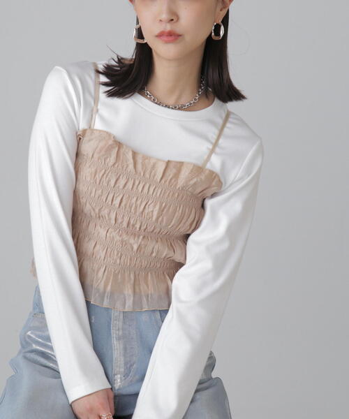 〔fabric&design〕光沢のあるシャイニーなシフォンジョーゼット生地にワッシャーをかけた生地を使用しています。表地自体は透け感がありますが、裏地が付いているので着用時も透けることなく安心です。シャーリングゴムをランダムにアシンメトリーに配置したデザインビスチェ。バストトップはメロー始末にし、ストラップも細めにして、華奢に魅せるようにしています。シャーリングゴムを全体的にあしらってはいますが、着用時に着ぶくれしないよう設定しています。〔styling〕シアーインナーやシャツの上から合わせてのスタイリングがおススメです。1枚着としてもお使いいただけます。■透け感:なし■生地の厚さ:薄手■裏地:あり■伸縮性:ややあり■光沢:ややあり■シルエット:スタンダードmodel:骨格ウェーブ---------------------------------------------------◆商品のお気に入り登録◆お気に入りアイテムの値下げ・再入荷・在庫1点などの通知を受け取ることができます。◆ブランドのお気に入り登録◆新商品や再入荷、セール、クーポン配布などお得な情報を受け取ることができます。---------------------------------------------------※ご注文いただいた予約商品のお届け時期の確認は、注文履歴ページより行えます。