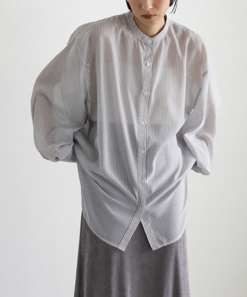 -point- & -styling- 細めのストライプとシアー感が春夏らしいバンドカラーシャツ。 ゆとりのある身幅で、柔らかく軽い素材なので着心地◎ さりげないストライプが春夏らしい爽やかな印象を叶えてくれます。 オーバーサイズとボリュームスリーブがエアリーな女性らしい雰囲気に。 シアーアイテムなのでこれからの時期の日焼け対策や冷房対策にも活躍する万能アイテム。 一枚で着るのはもちろん、キャミワンピースの羽織り合わせもおすすめです。 ノーカラーボリューム袖シースルーオーバーサイズシャツ ---------------------------- 素材 ポリエステル100% ---------------------------- 伸縮性 なし 裏地 なし ---------------------------- ※モニター・環境等により実際の商品と多少色味が異なって表示される場合がございます。 予めご了承をお願いいたします。 ======================= ■袋梱包の為、染料による特有の匂いが抜けきれず、匂いがする場合がございますが不良品にはあたりません。 上記注意点での返品、交換はお断りします。ご了承の上お買い求めくださいませ。 ■本製品は生産過程におきまして色味、サイズ感等若干の誤差が出る場合がございます。予めご了承くださいませ。 ======================= 【お買いものをお楽しみいただく為に!】 ▼商品のお気に入り登録 完売カラーの再入荷通知や、ラスト1点の通知、セールの通知も受け取ることができます。 ▼ブランドのお気に入り登録 新商品や再入荷など、いち早くブランドのお得な情報を受け取ることができます!