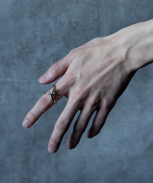 ーーー 2つのリングが連なったリング。 ーーー point □2つのリングが連なってできており様々なパターンで着用可能(2連、ツイスト、横並びなど) □リングはオリジナルで金型をおこし、うねりを加えたものを連ねた仕様。