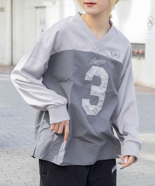 ーーー カジュアルコーデにおすすめ トレンドのユニフォーム風ナイロンT ーーー 【POINT】 Vネックがこなれ感を引き立てるロゴプルオーバー オーバーサイズなので1枚でももちろん、 シャツやロンTなどをレイヤードするのもトレンド感溢れる♪ 【STYLING】 トレンドのデニムパンツやスラックスと合わせてカジュアルにコーディネートしたり、 ティアードスカートなどのロングスカートを合わせてあえてレディライクにするのも◎ メンズライクなサイズ感ながらも、女性らしさも兼ね備えた1枚。 ゆるっとしたオーバーサイズがカジュアルに魅せてくれる! <3.3 Field Trip/3.3フィールドトリップ> ブランド名にある3.3はその名の通り「3.3平方メートル」を意味し、3.3 Field Tripと一緒なら、いつでもどこでも 快適にリラックスできるという意味が込められています。「We love Brooklyn」をモットーに、 実用的でありながらスタイリッシュなルックとナチュラルさを追求したALANDのプライベートブランドです。 ・・・・・・・・・・・・・・・・・・・・・・ 透け感:やや透ける(ネイビー(88)で計測しています。) 伸縮性:あり 生地の厚さ:普通 裏地:なし ・・・・・・・・・・・・・・・・・・・・・・ ▼取扱いSHOP:ALAND ファッション、雑貨、コスメなどさまざまなブランドを取り扱う韓国発のストリートセレクトショップ。 2020年秋、待望の日本上陸を遂げたALANDは、韓国の新進デザイナーとサブカルチャーを発掘し、 その価値を最も魅力的な方法でマーケットに発信する唯一のライフスタイル型ストリートセレクトショップです。 【お気に入り登録がオススメ】 ・商品のお気に入り登録 「在庫残りわずか」「完売カラーの再入荷」「セール」の通知を一足早く受け取ることができます。気になった商品はまずお気に入り登録へ! ・ブランドのお気に入り登録 お気に入り登録したブランドの新作や再入荷等、ブランドのお得な情報を定期的に受け取る事が出来ます。 ※屋外の光や照明の当たり具合で、実際の商品の色味とカラー別画像の色味に違いが発生する場合がございます。 商品の色味はスタジオ撮影の詳細画像にてご確認ください。 ※サンプルにて撮影をしておりますので、実際の商品とは仕様や加工・サイズ等が若干異なる場合がございます。