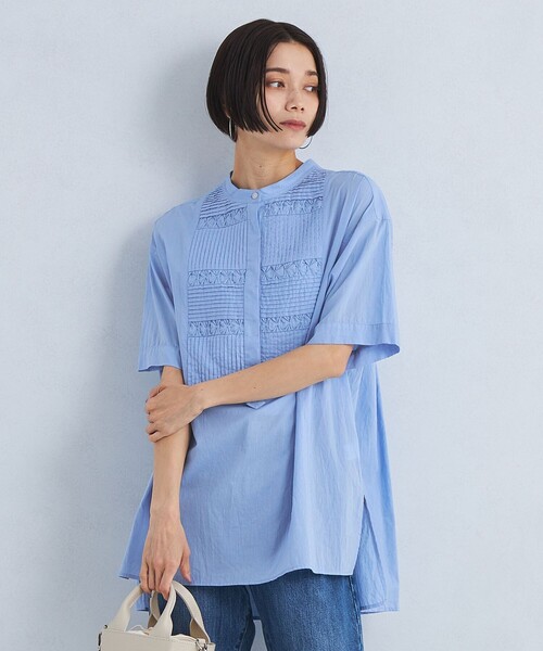 ==================== 骨格診断結果 【ナチュラル向き】 監修:骨格診断アナリスト ※他の骨格の方ももちろん着られます♪ ==================== クラフト感を感じさせるピンタックデザインがポイントのブラウス ■デザイン 柔らかくナチュラルな風合いが魅力のブラウス。 ほどよく身体から泳ぐルーズなシルエットがこなれた雰囲気です。 さらっと一枚でサマになるピンタックデザインと前後差のある裾デザインがポイント◎ ロングシーズン重宝する5分袖にも注目です。 バックのギャザーデザインが後ろ姿まで抜かりなくお洒落を演出します。 ■素材 柔らかな着心地のコットン素材。 肌離れの良い清涼感のある素材です。 ■コーディネート デニム合わせはもちろんのこと、カラーパンツや柄ボトムとも好相性。 シンプルなコーディネートに華やかさをプラスしてくれます。 ■サイズ拡大アイテム find my size [SHORT-36サイズ] あり ・身長148cm〜155cmの小柄で 身幅などのサイズ感は36サイズが良いという方に向けて。 ・SHORT-36サイズは一部店舗・WEBストアでの限定サイズとなります。 #春服,#夏服 ============================ 透け感:ややあり 伸縮:なし 光沢感:なし ケア方法:手洗い可 ============================ 【注意事項】 ※<SHORT-36サイズ>は、身長を基準としておりますがあくまでも目安となりますので、サイズ感は記載の採寸表をご確認くださいませ。 ※画像の商品はサンプルです。 ※商品を使用前に、タグ等に記載されている「取り扱い上の注意書き」、「洗濯表示」を必ずご確認ください。 ※商品画像は、光の当たり具合やパソコンなどの閲覧環境により、実際の色味と異なって見える場合がございます。あらかじめご了承ください。 ※商品の色味の目安は、商品単体の画像をご参照ください。 店舗へお問い合わせの際は、全国のgreen label relaxing各店舗まで下記の品名/品番をお申し付けください。 品名:◆◆CFC CRAFT TK BL5SL_A 品番:36161040994