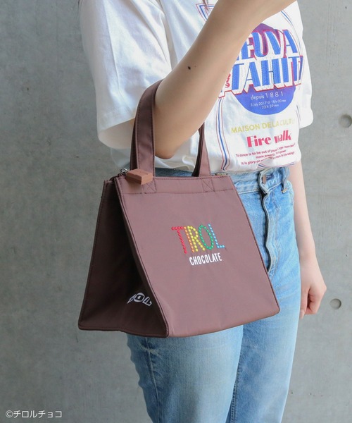 ACCOMMODEアコモデから『チロルチョコ』コラボシリーズが初登場!パッケージをそのまま落とし込んだデザイン。お馴染みのチロルチョコがバッグになりました。引き手には本物そっくりなチロルチョコが…!マチが大きめなので、お弁当箱や小さめの水筒が一緒に入るサイズ感。内側には保冷シートを使用しているので、ランチバッグとしてお使いいただけます。■内側:保冷シート
