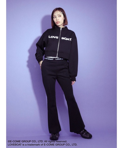 『LOVEBOAT』別注デザインのフレアパンツ。フィットフレアなシルエットが脚長な美スタイルを演出。ロゴ入りのウエストゴムもアクセントをプラス。伸縮性のある素材で動きやすく、スタイリングもノンストレスです。同シリーズのジャケットとセットで着用するのがおすすめ。 同シリーズのトラックジャケットとのセットアップ6P41L2Y0100 同シリーズのスカートとのセットアップ6P41L2L0100もおすすめです◎ セットアップアイテム一覧はこちら 透け感[無し] 裏地[無し] 伸縮性[有り] 光沢感[無し] 生地の厚さ[普通] 付属品[無し] ポケット[有り]前2つ●製品寸法:F:ウエスト33 ヒップ45 総丈100 股下73 わたり周り22 裾幅29備考: