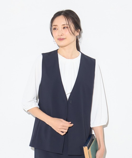 《いつもの装いをグッと引き締めてくれる、トレンドのジレ》 シーズンレスでお使いいただけるので、合わせるインナー次第でガラリと変わる表情を楽しめます。 レイヤードしても野暮ったくならないスムースな生地感で、デイリー使いからフォーマルなシーンまで幅広く活躍してくれます。 【デザインポイント】 ・着ると一気に今年らしいスタイリングに見せてくれるジレです。 ・同素材のボトムとセットアップで着ても、ワンピースに羽織っても着回しが効く1枚です。 ※ボトムは「関連商品」よりご覧いただけます。 ----------------------------- 透け感:インナー着用をおすすめ 伸縮性:あり 裏地:なし 光沢:なし ポケット:なし ----------------------------- 【スタイリング】 ・ブラウスやシャツの上に羽織った着こなしは春にもおすすめです。 ・ボトムスは、クールにワイドパンツなどを合わせていただき、スタイルアップした着こなしも可能です。 ・ショート丈のボトムスにスニーカーなどをあわせていただいても、トレンド感のあるコーディネートが完成します。 ・ロングスカートやワンピースなどをあわせていただくと、フェミニンな印象になります。 ・春の休日コーデにおすすめのアイテムです。 【カラーバリエーション】 ・ベージュ...コーデに羽織るだけで季節感もトレンド感も出るベージュはおしゃれカラー ・ネイビー(紺)...ネイビーはセットアップが通勤やお仕事シーンにおすすめです 【サイズバリエーション】 ・9号(Mサイズ相当) ・11号(Lサイズ相当) ・13号(LLサイズ相当) モデルは9号を着用しています。 【ブランド紹介】 A/C DESIGN BY ALPHA CUBIC通勤時やオフィスで、学校行事や“おうちの用事”などのオケージョンで、女性が気張らずに心地良くいるための服を提案するA/C DESIGN BY ALPHA CUBIC。 1枚のブラウスが時には仕事着となり、時には公園で散歩する普段着となる、そんなシーンを選ばない上質なスタンダードアイテムや、トレンドを取り入れた旬なアイテムをご用意しています。 【お買い物をお得にもっと楽しんで頂くために】 ▼商品のお気に入り登録▼ 完売カラーの再入荷通知や、ラスト1点の通知、プライスダウンしたセール通知も受け取ることができます。 ▼ブランドのお気に入り登録▼ 新作や再入荷等、いち早くブランドのお得な情報を受け取ることができます!