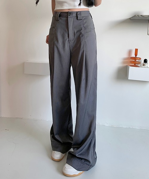 《 旬のローウエストスラックスでスタイリッシュに◎ 》■デザイン・ローウエストデザインが旬なスラックスパンツ・センターに入ったタックがきちんと感を演出・存在感のあるベルト通しもアクセントに◎■素材さらっと軽やかな素材感■スタイリングシャツブラウスとのスタイリングできれいめなオフィスファッション、スウェットやニットと合わせてカジュアルダウンした韓国ファッションなスタイリングにも。ウエストコンシャスなデザインなのでトップスインしたコーディネートもオススメです。パンプスからブーツ、スニーカーまでいろんなコーデを楽しめるスラックスです。※ 購入前にウエストサイズにご注意下さい!サイズを確認する前に、ご自身の骨盤位置のサイズをチェックして頂きますよう、お勧め致します。普段Mサイズ以上を着用される方へは、腰履きではなく骨盤の上での着用となります。(ローライズとは言え、股上が特別狭いタイプではない為、体型によっては通常履きも可能です。)上記の内容も、個人の体型等によっては異なる為、サイズをしっかりご確認の上、ご購入をお願い致します。------------------------------伸縮性:なし透け感:なし裏地:なし------------------------------------------------------------【スタッフが着用しました!】身長:153cm普段着用サイズ:S~Mサイズ今回着用サイズ:FREEサイズ・着用感厚底シューズと合わせてルーズシルエットで着用できました♪タックが綺麗に入ったワイドパンツで、縦ラインが出来てとってもスタイルよく見せてくれます♡------------------------------------------------身長:164cm普段着用サイズ:M~Lサイズ今回着用サイズ:FREEサイズ・着用感普通ソールでたぽっと丈を楽しめるデザインになっています♪ローウエストといっても短すぎないデザインで、丁度よい幅感◎ボトムスに合わせてあげるだけできちんと感のでるスラックスですね♫------------------------------------------------