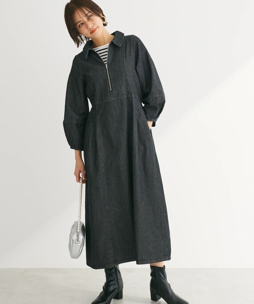 カジュアルなデニム素材で仕立てられたワンピース。 ハーフZIPを施すことで、雰囲気の変化を楽しむことができます。 バックのウエストゴム仕様がフィット感のある着心地を実現◎ 休日のお出かけコーデに大活躍すること間違いなしのアイテムです。 透け感[無し] 裏地[無し] 伸縮性[無し] 光沢感[無し] 生地の厚さ[普通] 付属品[無し] ポケット[有り]前2つ ●製品寸法: F:バスト45cm 着丈119cm 袖丈50cm 肩幅33.5cm ウエスト[後ゴム仕様]76~cm ヒップ116cm 備考: