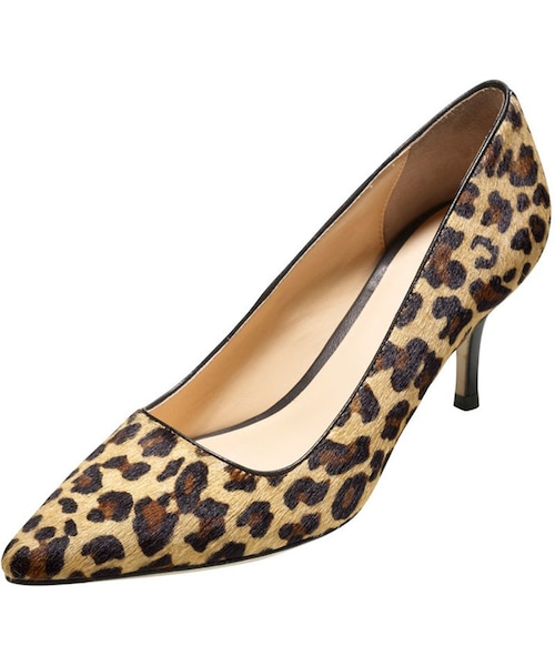 Cole Haan "Bradshaw" point-toe pump in leopard-print dyed calf hair (Brazil). 2.5"/65mm covered heel. Fully leather lined; fully padded leather sock lining. Suede buffed outsole with GRAND/OS technology. Imported.