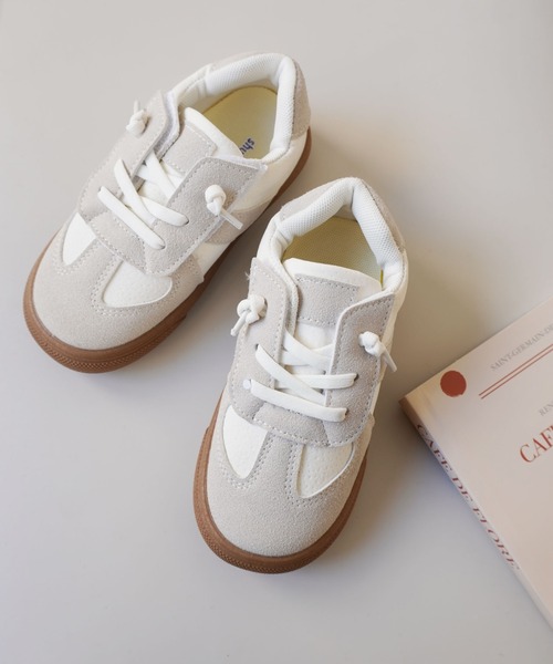 【 Bambin / ボンバン 】 コントラストカラー クラシック スニーカー かっこいいもかわいいにもピッタリなスニーカー♩ 異色のスエードのコンビネーションがこなれた印象のスニーカーです。 淡色使いのまとまったカラーリングで、コーディネートを選ばずデイリーに使えます。 ソール部分はラバーなので柔らかく、歩きやすさ◎ 両サイドマジックテープで履き口が大きく開くので、脱ぎ履きのしやすさも◎ カジュアルになりすぎないデザイン&素材なので、通園・通学用にはもちろんのこと、おでかけ用としても活躍してくれます。 パンツスタイルでカジュアルに合わせるのはもちろん、スカートやワンピースに外しアイテムとして合わせるのもおすすめです。 ※撮影・モニター環境等により実際の商品の色味と異なって見える場合がございます。 --------------------------------------- 【 Bambin 】 フランス語で“ちびっこ”の意味。 ベビー&キッズのお洋服や雑貨を中心に展開したキッズブランド。 “ままとこどもの笑顔に寄り添いたい” そんな思いから誕生した【 Bambin 】 育児を楽しくするお手伝いができますように。 --------------------------------------- 【インフォメーション】 ◆商品のお気に入り登録 完売カラーの再入荷通知を受け取ることができます。 ぜひご登録ください♪ ◆ブランドのお気に入り登録 新商品や再入荷などのお得情報を受け取ることができます。 ぜひご登録お願いします