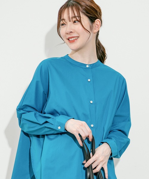 【デザイン・シルエット】脇下までざっくりと開いた、特徴的な裾のブラウスです。裾の長さに前後差があり、どの角度から見てもかわいいシルエットです。ノーカラーで首元がスッキリしています。シェルボタンも上品なポイントです。【素材感】テトロンとコットンを混紡したTC素材【カラー】11シロ 12シロ(ストライプ) 15オフ 44ブルー 52ラベンダー【スタイリングポイント】サイドからさりげなくボトムを覗かせるのがかわいい着こなしです。広めの身幅なので、細身のボトムとの相性が抜群です。肌寒い時期がニットをレイヤーして、裾を出すコーディネートも◎カラバリ豊富なのでお手持ちのボトムにぴったりなお色味が見つかります!裏地:なし光沢感:なし透け感:ありポケット:なし伸縮性:なし生地の厚さ:普通ボタン:ありその他仕様:ラウンドヘム季節:春※撮影時の光、お使いのモニター環境によって色の見え方が違う場合がございます。予めご了承ください。モデル身長:167cm 着用サイズ:M