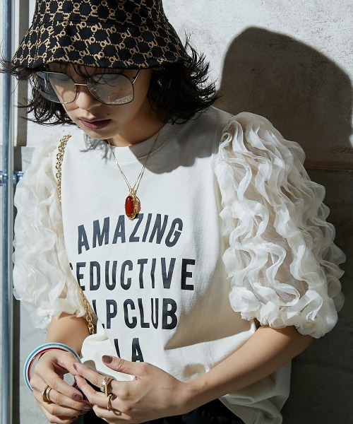 昨年大人気だったトップスが今年も入荷!!1枚で着映えする、魅力的なデザイン。今年も数量限定なのでお見逃しなく!チュール素材にフリルを付けた生地を使用したパフスリーブが印象的なトップス。■デザイン袖にはフリルを施し、華やかな印象。身頃はロゴプリントを施し、甘辛ミックスのデザインにしました身頃はカットソーを使用しているので着心地は楽々。ふんわりとしたバルーンスリーブが二の腕をカバー。クルーネックが首元をすっきりと見せてくれます。■素材身頃は着心地のいい綿100%の天竺生地を使用。袖はチュール生地に細かくフリルをたたきつけた華やかな、こだわりの生地を使用しました。■おすすめのスタイリング印象的なトップスなのでボトムはすっきりとしたタイトスカートやカジュアルなデニムパンツ合わせがオススメです。<仕様>袖口ゴム入 柄の出方が多少異なる場合があります。透け感:ややあり伸縮性:ややあり生地の厚み:普通光沢感:ややあり季節:夏向きシルエット:普通<洗濯方法>手洗い<対応サイズ>M :バスト:79~90/ウエスト:64~69/ヒップ:91~95L :バスト:86~94/ウエスト:69~77/ヒップ:92~100LL :バスト:93~101/ウエスト:77~85/ヒップ:97~1053L :バスト:100~108/ウエスト:85~93/ヒップ:102~1104L :バスト:107~115/ウエスト:93~101/ヒップ:107~1155L :バスト:114~122/ウエスト:101~109/ヒップ:112~120※こちらはヌードサイズです。※平置きのアイテムサイズとは異なる計測方法となりますのでご了承ください。#ゆったり#体型カバー#二の腕カバー#大きいサイズ#プラスサイズ#大きいサイズレディース#M#L#LL#3L#4L#5L【気になる商品はお気に入り登録がおすすめ】▼商品のお気に入り登録完売カラーの再入荷通知や、ラスト1点の通知、セールの通知などお得な情報が受け取れます。▼ブランドのお気に入り登録新商品や再入荷など、ブランドのお得な情報をいち早く受け取ることができます。【GEVS.(ジェイヴィス)】ヴィンテージSHOPのdead stockの中から宝物を探すようなワクワク感を。GEVS.は一目惚れするアイテムと気分が上がるトレンドのスタイリングがいっぱいの空間を提供します。▼公式Instagram@gevs._officialsite