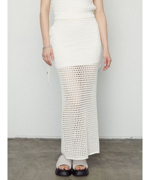 クロシェ編みの透け感がポイントのロングスカートセットアップ着用可能ポイントリボンクロシェトップ(042432670501)■デザインサイドのリボンディテールがトレンド感のあるクロシェ編みスカートです。脇に垂れるリボンディテールで、ヒップ回りをカバーしながらアイラインのシルエットを強調してくれるので脚長効果もあるデザインになっています。バックにはスリットが入っており歩きやすくなっています。■スタイリング同素材のポイントリボンクロシェトップと合わせたワンピース風の着こなしや、カジュアルなプリントアイテムを合わせるスタイリングがおすすめです。サマーニット※着用画像はフラッシュの加減で実際の製品と色味等が異なる場合が ございますので、生地のズームアップ画像をご確認ください。 ※ご利用の端末画面の設定により実際の商品と色味が異なる場合がございます。 【商品特徴】 透け感:あり伸縮性:あり 生地の厚さ:薄手サイズ感:細身 裏地:あり ポケット:なし 【トクする便利機能】♡商品のお気に入り登録再入荷時、ラスト1点の時、セール開始時にお知らせします。♡ブランドのお気に入り登録新商品や再入荷、セール情報など、ブランドのお得な情報を受け取ることができます。是非ご活用ください!