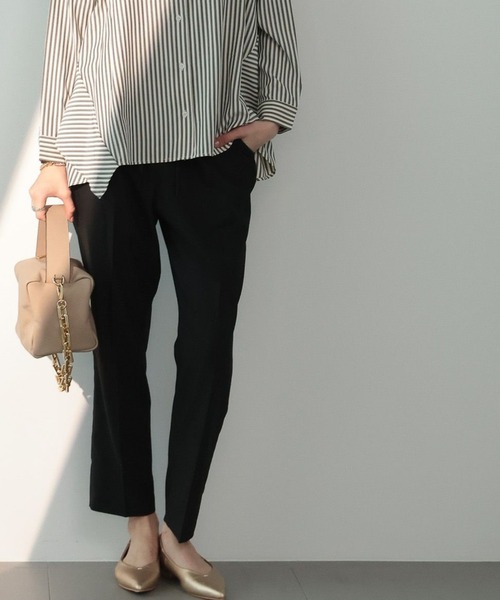 ON/OFF兼用!楽にきちんと見えする美脚パンツオンオフ兼用で使えて美脚が叶う、優秀なテーパードパンツ。さらっとした肌触りで、ストレッチの効いた楽な履き心地が魅力です。ウエストゴム仕様も嬉しいポイント!センタープレス入りで、きちんと見えするのでオフィスにも最適◎カジュアルコーデでも活躍する万能な1本です。Vネック5分袖ブラウス#992142とセットアップでの着用も可能です。・・・・・・・・・透け感:透けない伸縮性:なし生地の厚さ:普通裏地:なし■手洗い可グレーで計測しています。※こちらは参考情報となります。カラーにより多少の誤差がございます。※商品の取り扱い方法につきましては、タグ等に記載されている「取り扱い上の注意」「洗濯表示」をご確認ください。・・・・・・・・・【SALOON】―Effortless chic―心地よい素材でその時々の気分をカジュアルスタイルで表現、BASICアイテムをベースに様々な場面に活躍できるファッションを。”今の自分”と”新たな自分” これまでも、これからも素敵な自分に。をテーマにしたブランドです。※サンプルにて撮影をしておりますので、実際の商品とは色味・仕様や加工・サイズ等が若干異なる場合がございます。予めご了承くださいませ。お買い物をお得にもっと楽しく!上手な活用方法>>>♡商品のお気に入り登録▼完売カラーの再入荷通知や、ラスト1点の通知、プライスダウンしたセール通知も受け取ることができます!♡ブランドのお気に入り登録▼新作や再入荷等、いち早くブランドのお得な情報を受け取ることができます。【ご注意】・屋外の光や照明の当たり具合で、実際の商品の色味とカラー別画像の色味に若干の違いが発生する場合がございます。 詳細画像と併せてご確認の上、ご注文いただきますようお願い致します。