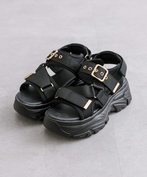目を惹くゴールドバックルがポイントの厚底サンダル■デザイン・ボリュームソールで履くだけで脚長効果が期待できます。・かかと部分と前面のベルトでサイズ調節できるので、フィット感があります。・高低差があまりないプラットフォームで、安定感があり長時間歩きやすいです。・ベーシックなカラー展開で合わせやすさも抜群です。・S/M/L/LLの4サイズ展開も魅力的。■カラー・アイボリー/ブラックの2色展開■スタイリング・ハイソックスなどを合わせて韓国っぽく履くのがおすすめ。・ワンピースやスカートなどガーリーなアイテムと合わせるのがおすすめ。・デニムパンツなどのカジュアルアイテムとの相性も◎重さ: 約420g※着用、お取り扱いの際は、商品についている品質表示とアテンションタグを必ずご確認下さい。※ご覧のモニター環境や撮影環境により実際の商品と多少色味が異なって見える場合がございます。ご理解の程よろしくお願いいたします。※デザインと素材により、着用サイズが異なる場合がございます。あらかじめご了承ください。※皮革の表面はキズが付きやすい為、お取り扱いには十分にご注意ください。※使用時にお洋服などや周辺の壁など表面の粗いものとの摩擦やひっかかりに注意してください。※湿気の多い場所での保管や、水に濡れたまま放置しますと、変色、色移り、サビ、カビ、破損の原因となります。■お気に入り登録のおすすめ【気になるアイテムを登録】ハートをクリックしてお気に入りに登録すると完売カラーの再入荷やラスト1点の通知、セールの通知を受けとることができます。【ブランドを登録】新商品や再入荷、セール通知など、いち早くブランドの情報を受けとることができます。