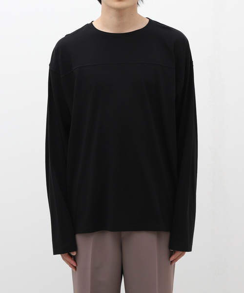 《2024SS TanC × BOUCLE》 元々、WOMENS企画で採用されていたドライタッチでシアー感のあるコットン100%の生地でFOOT BALL TEEを型から別注。 フェミニンな見え方になりがちなこの生地をスポーティなアイテムに落とし込む事により印象を変え、全体はリラックスフィットながら、着丈をショート、袖丈をロングのバランスにし、ネック幅もややナローにするする事で生地特性も相まって、ヘルシーな色気を纏ったモダンなカットソーに。 一枚着でも良し、シアー感を生かしてインナーにタンクトップを重ねるのもお勧めです。 【TanC / タンク】ノイズにならないタンクトップ、着る人の個性を引き出すタンクトップ、気持ちよく前向きにしてくれるタンクトップ。タンクトップに合う洋服作りをします。 【ご注意】※照明の関係により、実際よりも色味が違って見える場合があります。またパソコン・スマートフォンなどの環境により、若干製品と画像のカラーが異なる場合もございます。※商品の色味は、商品アップ画像をご参照ください。 モデルサイズ:身長:179cm 着用サイズ:L 本体:洗濯機洗い(弱)
