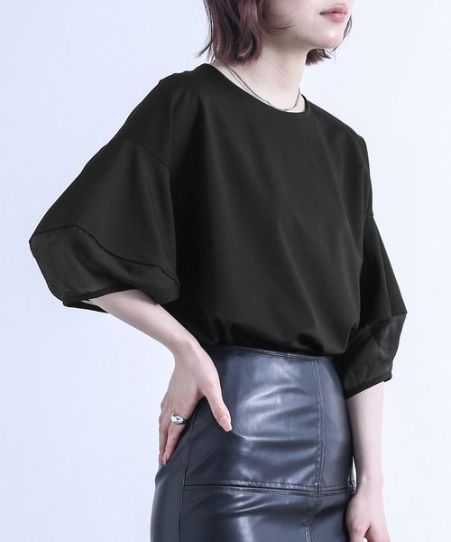 ■デザインシアー素材との切り替えがお洒落なランタンスリーブTシャツ。立体感が出るように切り替えデザインにこだわった一着。■素材着た瞬間にひんやりする接触冷感のつるっとしたキレイめカットソー生地。洗濯後、整えて干すだけでシワになりにくいのが嬉しいイージーケア機能も付いた優秀素材です。※接触冷感とイージーケア機能は生地の特性なので半永久的に効果は持続します。■コーディネートシンプルながらもランタンスリーブで目を惹くデザインなので、定番のデニムスタイルはもちろん、チノパンツでカジュアルに合わせたり、ジャンパースカートで袖を強調させるスタイリングもオススメです。※こちらの商品は、 モノフィラメント糸を使用しております為、お肌に刺激を感じる場合がございます。敏感肌の方は、インナーを合わせてご着用くださいませ。 ご了承の上ご購入いただきますようお願いいたします。=====================【サイズ1(M~L)】着丈(前/後)65cm肩幅:58cmアームホール:40cm袖丈 :25cm袖口周り:30cmバスト:120cm裾周り:116cm 重量:約270g=====================【サイズ2(LL~3L)】着丈(前/後)68cm肩幅:66cmアームホール:44cm袖丈 :25cm袖口周り:34cmバスト:134cm裾周り:132cm 重量:約310g=====================