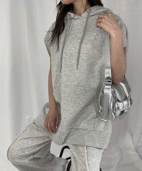 -unisex item-■ポイントダメージ加工がアクセントになるノースリパーカー♪■ディティール裏毛素材を使用したENVYMらしさのあるノースリパーカー。様々な位置にダメージ加工を加え、一癖あるデザインに。アームホールが広くなっているので二の腕周りが華奢見えします。■スタイリング同素材を使用したセンターシームスエットパンツとSETUP着用がおすすめ。低身長の方ですと、ショーパン等合わせてチュニック風に着るのも◎お手持ちのスキニーパンツでメリハリのあるスタイリングもおすすめです。▼商品のお気に入り登録完売カラーの再入荷通知や、ラスト1点の通知、セールの通知など商品の情報をいち早く受け取ることが出来ます。▼ブランドのお気に入り登録 新商品や再入荷等、いち早くブランドのお得な情報を受け取ることが出来ます。 【返品・キャンセルについて】 ・着用・洗濯後の返品・ご交換はお断りしております ・商品到着後、着用前に商品を確認して頂きますようお願い致します。 ・ タグの無い商品は返品、ご交換はでき兼ねますのでご了承ください ※照明の関係で、実際のお色味と若干異なる場合がございます。 また表示のサイズ感と実物は若干異なる場合もございますので、予めご了承ください。