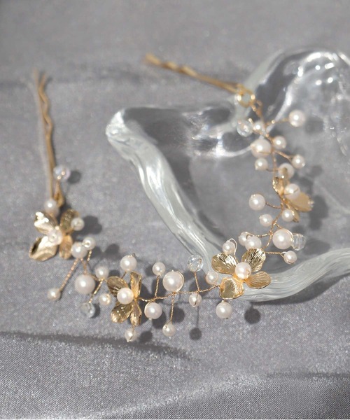 フラワーモチーフとパールの組み合わせが、うしろ姿を可憐な雰囲気に導くヘッドドレス。 頭のサイドやポニーの結び目に沿わせて留めるだけで、簡単にパーティーアレンジが完成します。 ※ATTENTION※ ■微細なキズや製造ムラはすべての商品に含まれます。 <価格改定のお知らせ> 原材料の高騰により、2024/06/01から価格改定をさせて頂きます。 商品タグに旧価格が記載されているものが混在している場合がございますが、 ご了承下さいますようお願い申し上げます。