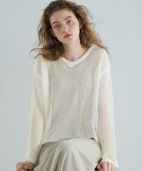 今季も注目のざっくりとした抜け感のあるメッシュニット ■デザイン・シルエット Vネックで顔周りをすっきりと女性らしく仕上げたメッシュニット。 程良い丈感なのでトップスはインとアウトどちらでもお洒落に決まります。 ■生地 ・チクチクしづらく着心地の良い柔らかいメッシュニット生地 ■コーディネート 無難なベーシックカラーでお手持ちのアイテムと合わせやすいので、 キャミソールやタンクトップとレイヤードしてヘルシーな着こなしを楽しめます。 肌見せが苦手な方は、細身のシアートップスやロンTとのレイヤードスタイルも◎ アメスリキャミワンピース(46-230918002-04)の上から合わせたコーデもおすすめです。 伸縮性:あり 透け感:あり 裏地:なし ポケット:なし 生地感:柔らかいメッシュ生地 注意点:デリケートな素材のため、負荷がかかると縫い目の滑脱等が生じる恐れがあります。 お洗濯方法によっては縮みや色あせの可能性あり。乾燥機等のご使用はお控え下さい。 ▼生地や素材の性質により2cm前後サイズ誤差が出る場合がございます。 ▼モデル着用写真は撮影環境により、多少実際のカラーと異なる場合がございます。 ▼色落ちの恐れがありますので、他のものと分けて洗って下さい。 ▼当商品は機械による生産の過程上、『生地を織る際の糸の継ぎ目』や多少の『ほつれ』、繊維の『混紡』、形やサイズに多少の『誤差』が生じる場合がございます。