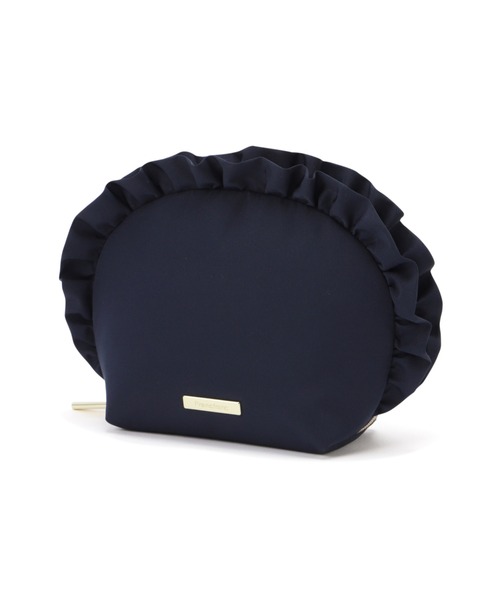シンプルなデザインにフリルをあしらった大人かわいいラウンドポーチです。季節やトレンドに左右されず定番でいつも持っておける使いやすいデザイン。表生地には撥水加工が施してあり、汚れや水などが付いてもサッと拭きとれます。メイク小物を出し入れしやすいラウンド型。持ち運びやすいサイズ感です。【注意事項】■洗濯はお避けください。■素材の特性上、直射日光やライトに長時間照らされると変色する場合があります。■強い摩擦や水濡れは色落ちおよび傷の原因となりますのでお避けください。■汚れが付着した場合は布等を使用して除去してください。油性など種類によって取れにくい汚れもございますのでご了承ください。■ベンジン・シンナー類は使用しないでください。■商品に過度の荷重を加えますと破損の原因になりますので、ご使用の際は十分にお気をつけください。■濃色部分は色移りする可能性がございますので淡色との組み合わせはお避けください。■撥水効果は使用頻度により徐々に低下していきます。撥水が弱くなりましたら市販の撥水スプレーをご使用ください。■表生地に撥水加工をしております。撥水(水をはじきやすい) :汚れがつきにくい・汚れをサッと拭き取れる・濡れても浸透しにくくシミになりにくい※ご使用頻度や経年により効果は徐々に弱くなります。■原産国:中国