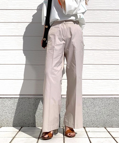 シャリ感のあるコットン×ナイロン素材を使用したカラーパンツです。 レッグラインを拾わないセミワイドなシルエットだから、さりげなく体型カバーしながらすっきり見せも叶いそう。 バックウエストにはゴムを通しているから、穿き心地も◎ 《インフォメーション》 ◆商品のお気に入り登録 完売していても再入荷時に再入荷通知を受け取ることができますので、是非ご登録ください。 ◆ブランドのお気に入り登録 新商品や再入荷などの情報を受け取ることができますので、是非ご登録ください。