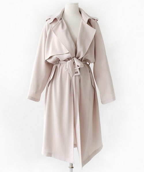 ソフトで滑らかな素材のロング丈トレンチコートです。ルーズなフィット感で、ボタンがないタイプなのでサラッと羽織るだけでもキマります。ウエストのベルトつきなので、ウエストで少しブラウジングしてベルトできゅっと縛ると脚長効果あり! ※WEARに記載してある金額と、DHOLIC通販サイトに記載してある金額にシステム都合上誤差がございますが、正しい金額はDHOLIC通販サイトの方です。