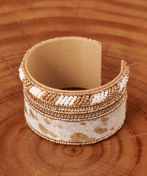 ハラコ×ビーズの大人可愛い存在感抜群なバングル ▼ポイント ハラコ×ビーズの異素材が珍しいバングル。 カジュアルになりがちなビーズアクセもハラコが上品な印象を演出してくれます。 太めのラインがスタイリングのアクセントに◎ シンプルなスタイリングのワンポイントにおすすめです。 --------------------------------------------------- 【Aguni/アグニ】 Aguni---サンスクリット語で火の神。 インドの代表的なカラフルな刺繍やプリントを使ったシリーズ。Aguniは着飾ることなく大人の女性らしさを引き出してくれるようなアイテムを提案。 --------------------------------------------------- ※着用、お取り扱いの際は、商品についている品質表示とアテンションタグを必ずご確認下さい。 ※画像の商品はサンプルです。実際の商品と仕様、加工、サイズが若干異なる場合がございます。 ※可能な限り実物に近いカラーにて掲載していますが、撮影環境やモニター環境などにより製品と画像のカラーがやや異なって見える場合もございます。予めご了承ください。 【お買いものをよりお楽しみいただく為に!!】 ▼商品のお気に入り登録(ハートマークをクリック) お気に入りアイテムの完売カラーの再入荷通知や、ラスト1点の通知、セールの通知も受け取ることができます。 ▼ブランドのお気に入り登録 新商品や再入荷、クーポン配布などのお得な情報を受け取ることができます。