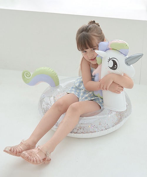 ユニコーンモチーフが映えるスイムリング。輪っかの部分にはキラキララメがたくさん入っています。 海やビーチへのお出かけにもおすすめのアイテムです。 様々なスイムグッズをご用意しています。この夏はリセマインのアイテムで楽しもう♪ ◎定員 1人 ◎寸法/外径・約60cm(空気を入れない状態) ◎浮き輪に対する胸囲目安寸法/約58cm ◎対象年齢/5~6歳 ※モデル着用写真より商品写真が最も実物に近い色味です。 ※掲載画像の商品の色味は、光の照射や角度により実物と色味が異なる場合がございます。また表示のサイズ感と実物は若干異なる場合もございますので、予めご了承ください。 学校 プール 水遊び 海水浴 川遊び 夏休み 旅行 お出かけ