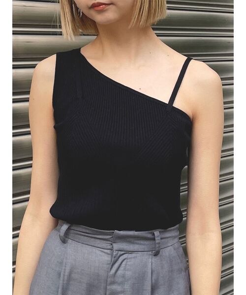 大胆なワンショルダー風デザイン1枚でも決まるさりげないリブデザインがポイント■アイテムビスチェディテールがトレンド感溢れるアシンメトリーのワンショルダーニット。リブ編みのタイトなサイズ感が女性らしさを底上げします。一枚使いは勿論、シアーシャツのインナーとしての使用も◎ボトムは何にでも幅広く合わせる事ができる万能アイテムです!--------------------------------------------透け感:なし 生地の厚さ:普通伸縮性:あり サイズ感:ややタイト--------------------------------------------【知って得する便利機能◎ 】■商品のお気に入り登録再入荷時、ラスト1点の時にお知らせします。■ブランドのお気に入り登録新商品やお得な情報など、いち早くお得な情報をゲット!ぜひご活用ください。※着用画像はフラッシュの加減で実際の製品と色味等が異なる場合がございますので、生地のズームアップ画像をご確認ください。※ご利用の端末画面の設定により実際の商品と色味が異なる場合がございます。