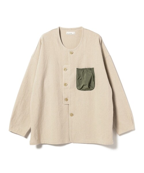 雰囲気のある素材 リラックス感のあるノーカラー綿×麻素材のホップサック生地を使用。生地を小ロットずつ長時間もみほぐすことで自然な風合いとなり、ヴィンテージのような質感となっているのが特徴。リラックス感のあるボックスシルエット、立体的に仕上げた異素材の胸ポケット、前身頃の持ち出しのデザインや袖口が〈rdv o globe〉らしいクラシカルでオリジナリティのあるデザインです。※サイズスペックは0のサイズパターンはレディース仕様、Ⅱのサイズパターンはメンズ仕様です。■ケア方法水洗い・ドライクリーニング両方可(詳細は商品についている品質表示ラベルをご覧ください)rdv o globe / ランデヴー オー グローブバイイング、ディレクターの経験を経て、デザイナー前淵氏によって立ち上げられた〈rdv o globe(ランデブー オー グローブ)〉。トップスとボトムスでボリュームを変えた絶妙なバランス、ヴィクトリア朝のディテールを現代風に取り入れたデザインが特徴的。