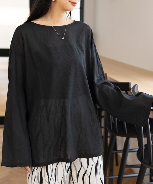 着回しが楽しめる万能トップスの登場 【デザイン】 程よい透け感で涼しげな雰囲気のシアートップスです。インナーを着て1枚で着たり、上にビスチェを合わせてレイヤードも◎この春に大活躍してくれること間違いなしのアイテムです。 【スタイリング】 ・デニムパンツを合わせて春らしい爽やかな雰囲気に。 --------------------------------------------------- 【気になる商品はお気に入り登録がおすすめ!】 ・在庫残りわずか ・再入荷 ・セールの情報 などの通知を受け取ることができます。 気になる商品は♡をクリックして、 「お気に入り登録」しましょう! 【ショップ・ブランドのお気に入り登録も!】 新商品や再入荷、セール、クーポンの配布など、 いち早くお得な情報を受け取ることができます。 ---------------------------------------------------