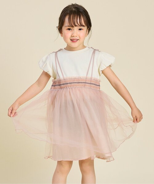 女の子が大好きなチュールのドレッシーなデザインのワンピース。<br>シャーリングのウエスト部分には刺繍を施し、銀糸も混ぜた刺繍にしているので、華やかなアイテムになっています。<br>ベビーアイテムの『S232034 ウエストシャーリングデザインチュールロンパース』とお揃いコーデがおすすめ。【取り扱い表示】40℃を上限に洗濯機で洗濯、デリケートアイテムモード、ネット使用、漂白剤を使用禁止、色物は同系の色と一緒に、洗濯後直ちに取出し、タンブル乾燥不可、日陰で吊り干し、低温でアイロン、商業ドライクリーニング不可【ご注意事項】この商品は着用中の摩擦や洗濯により毛羽の乱れ、毛羽脱落、毛玉が生じることが有ります。できるだけ美しくご利用頂く為に次のことにご留意下さい。○毛玉は毛玉取り器またはハサミで丁寧にカットして下さい。○毛羽が他に付着した際はテープやブラシで除去して下さい。○他の製品とは洗わず、単独でお洗濯して下さい。○タンブル乾燥はお避け下さい。素材の特性上、過度の力(引っかけや摩擦等)がかかることにより、ループが飛び出したり、ほつれることがあります。出来るだけ美しくご利用頂くために次のことにご留意下さい。○ 過度の力がかからない様に着用、着脱には十分ご注意下さい。○ 押し洗いを推奨いたします。○ 形を整えてから干して下さい。※商品により多少の誤差が生じる事がございます。あらかじめご了承下さい。※ご使用のパソコンやブラウザの環境により、実際の色とは多少異なる場合がございます。※モデル着用写真についてはイメージの為、実際の商品とカラーや仕様が異なる場合がございますので、商品画像をご覧ください。【 SERAPH -セラフ- 】毎日に新鮮なアクセントが加えられるナチュラルなデイリーウェア。ファッションの流れに敏感な、おしゃれなママとキッズのために、クリーンで繊細なデザインとディテールをやわらかく温かみのある優しい素材で表現したブランド。ボーダー、チェック、ストライプといったシンプルなテキスタイルにトレンド要素をプラス、ナチュラルな色使いを大切にウェアから雑貨まで、キッズのカジュアルで少し上品なコーディネートを提案します。