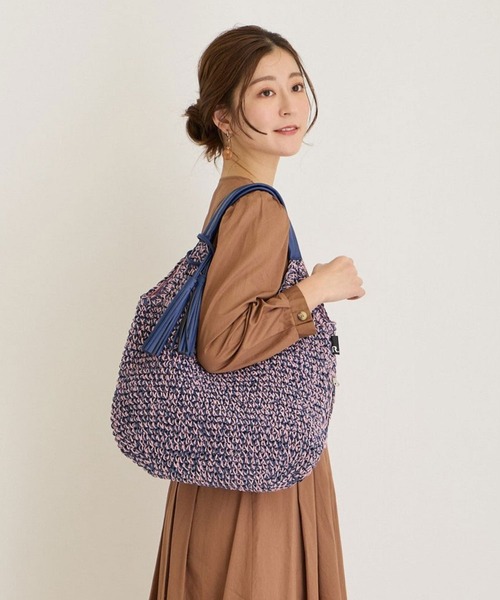夏の季節にぴったりな素材感。2色の編み地を使用し、きれいめなデザインにしました。取り外し可能な底板入りなので型くずれ防止にもなり、綺麗な形を保ったままご使用できます。大きめのタッセルがワンポイントアクセントのROUND。やわらかペーパー素材で、カゴバッグをおしゃれに持ちやすく。持つだけでおしゃれな「カゴバッグ」。でも硬くて重い素材のものが多く、持つと疲れるというお声も。紙素材をひも状にして編んだこのバッグは、軽くて、肩掛けするとすんなり体になじむやわらかさ。カゴには珍しい色使いで、幅広い服装に合います。品番「1150」01:レッド系その他/StrawberryMilk02:ブラック系その他/SESAME03:パープル系その他/Blueberryポケット:外側ファスナー付1箇所 / 内側2箇所