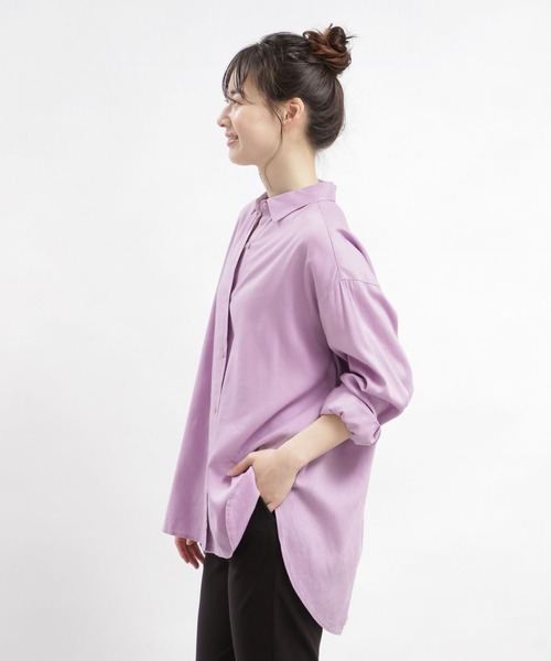 スムースクリーン 日常にさらっと清涼感。 【素材】 ・清涼感ある肌触りで、さらっとした涼やかな着心地。 ・ほどよい落ち感で、高見え、キレイ見えが叶います。 【デザイン】 リネン混+レーヨン素材なので、トロミと落ち感を生かした オーバーサイズすぎない程よいゆとりのサイジングが魅力の1枚です。 ドロップショルダーになっているので華奢見え効果も。 サイドスリットはラウンド型なのでアウトスタイルでもサマになり、 フロントインもしやすいディティールに。 季節の変わり目に1枚でも、寒暖差のある時期の羽織りとしても日焼け対策としても、 ロングシーズン活躍します。 ベーシックなホワイト系その他・ネイビーは合わせやすさ抜群で、 春夏らしい色味のセージグリーン・ラベンダーはリネン素材なので柔らかく女性らしい印象です。 また、チェックは小さめのギンガムチェックなので大人の方でも着やすく、 はブルー系その他5は定番のブルー×ホワイトで爽やかな印象と細見え効果も期待できます。 【お勧めスタイリング】 王道スタイルとしてTRストレッチタックテーパードパンツ/175890等のテーパードパンツ合わせ、 スカート見えパンツ/175885やストレッチタックテーパードDENIM/180893等と合わせたリラックススタイルもおススメ。 グレー・ライトグレーは、同素材のリネン混フレアワイドパンツ/180964と合わせてオールインワン見えも。 更に、同素材でリネン混袖ボリュームブラウス/180953もご用意しております。 ----------------------------- 伸縮性:なし 生地感・厚さ:普通 裏地:なし ----------------------------- ※ネイビーで計測しています。 ※こちらは参考情報となります。カラーにより多少の誤差がございます。 【お買い物が便利になる機能がたくさん!】 ▼商品のお気に入り登録▼ 完売アイテムの再入荷通知、ラスト1点、またクーポンやお値下げ通知をお知らせします。 ▼ブランドのお気に入り登録▼ 新商品や再入荷のお知らせ等、いち早くブランドのお得な情報を受け取ることができます。 ぜひご登録ください。