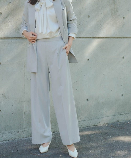 【デザインポイント・着こなしポイント】ドロワットで人気の丈感のすっきりワイドパンツ。同素材のジャケット(3805-41034)と合わせればかっちりとした印象に、遊び心のあるブラウスやカラーニットとあわせればキレイ目オフスタイルの完成。【素材の特徴】麻のようなナチュラル感とドライなタッチのリネンライクポリエステル素材はしわにもなりにくく、軽くて扱い易い素材です。接触冷感昨日もあるので暑い日もさらっと着ていただけます。----------------------------------洗濯方法家庭洗濯:液温は40℃を限度とし、洗濯機で弱い洗濯ができる。自然乾燥:平干しが良い。アイロン:アイロン仕上げ禁止。ドライクリーニング:パークロロエチレン及び石油系溶剤による弱いドライクリーニングができる。----------------------------------※画像の商品はサンプルとなりますので実際の商品と仕様、加工、サイズが若干異なる場合がございます。※お客様のモニター環境により実際のお色と多少異なる場合がございます。※撮影状況や光の当たり具合により、色合いが異なって見える場合がございます。※商品タグに記載されたサイズはヌードサイズです。実際の商品のサイズは商品情報の実寸をご確認ください。