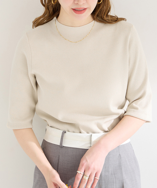 【2024SS】 B.C STOCK 人気のソウバリシリーズから今の時期にぴったりの5分袖丈ニットが登場! 通勤使用のきれいめなコーディネートに合わせやすい5分袖になり、色々なアイテムに合わせやすいニットプルオーバーとなります。 首元にやさしくフィットするボトルネックが品の良さを演出してくれます。 シンプルでどんなスタイルにも合わせやすく、色違いでも欲しくなる一着です! 手洗い可能でご自宅でのイージーケアができるのも嬉しいポイントです! ≪総針(ソウバリ)とは?≫ 「総針編み」という編み機全ての針を使うことからこの名がつきました。 手間も糸の量も多いだけに、しっかりとしたハリ感と目の詰まった編地が特徴で、品の良さが特徴です。 ※ネイビー(040)はオフホワイトの地に黒に近いネイビーのボーダー柄となります。 ※取り扱いについては、商品についている品質表示でご確認ください。 ※ネイビー(040)カラーに関して ・配色が濃淡の製品は色移りすることがあるので、汗をかいたり、雨や水に濡れたままの放置はお避けください。 ※こちらの商品は、B.C STOCKでの取り扱いになります。直接店舗へお問い合わせの際は B.C STOCK店舗へお願い致します。 ※照明の関係により、実際よりも色味が違って見える場合があります。またパソコン・スマートフォンなどの環境により、若干製品と画像のカラーが異なる場合もございます。 ※商品の色味は、商品アップ画像をご参照ください。 着用スタッフ:163cm 着用サイズ:フリー 詳細着用スタッフ:167cm 着用サイズ:フリー 本体:洗濯機洗い(弱)