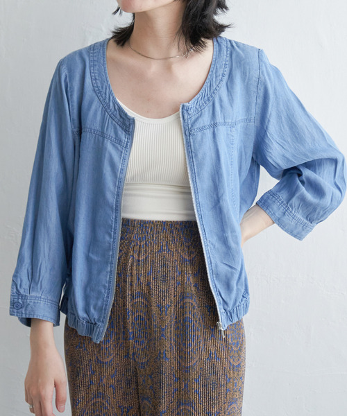 やわらかな生地感で、ライトアウターとして便利なデニムブルゾン。ノーカラー&コンパクトな丈感でコーディネートのバランスが取りやすいです。【素材】軽くやわらか、ほどよい光沢感が魅力のデニム生地。【デザイン】首元はノーカラーですっきりと。背中にはギャザーを入れて後ろ姿にもこだわりました。【おすすめコーディネート】ワンピースにさらっと羽織ったり、ワイドパンツやフレアスカートなどボリュームのあるボトムとの組み合わせがおすすめです。★Instagramにて近日発売予定のアイテムやルックをご紹介しております。 @vence_sharestyle★《お気に入り登録》でお得な情報がいっぱい★・「商品のお気に入り登録」で再入荷通知や、ラスト1点の通知、セール通知も受け取ることができます。・「ブランドのお気に入り登録」で新商品や再入荷など、お得な情報を受け取ることができます!※商品の色味は、撮影場所や光のあたり具合などにより色味が違って見える場合がございます。また、お客様のお使いのモニター環境などにより色味が違って見える場合がございます。予めご了承の上ご注文下さい。※他のキャンペーンにより、期間中に価格が変動する場合があります。※セールは予告なく終了させていただく場合もあります。[クリーニング]手洗い可、ドライクリーニング可(F)、ウェットクリーニング(W)