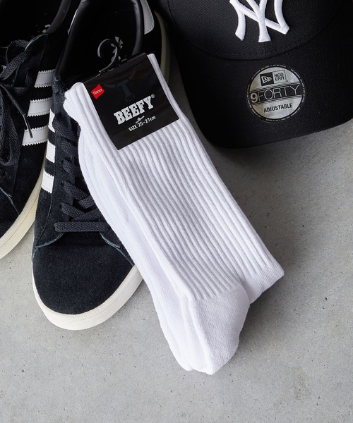 【HANES】使い勝手抜群!快適な履き心地にこだわったフルレングスソックス2足セット BEEFY(ビーフィー)のコンセプトを体現するタフで快適な2足組フルレングス丈ハーフパイル仕様のソックスです。つま先とかかとの補強と高密度な編みによるタフさを持ちながら、肌に触れる大部分を綿100%にする綿高混率の快適設計。 優しい肌触りと足底クッションの心地良い着用感が特長です。 足裏にBEEFY転写ネームを入れています。 【HANES/ヘインズ】 「快適な着心地を約束する、身近で親しみやすいブランド、ヘインズ」 毎日着るものだからこそ、その素材や肌触り、シルエットや動きやすさにこだわりたい。 快適な着心地を追求するヘインズは数々の厳しい条件を満たす製品作りに取り組んでいます。 そして、いつも身近で親しみやすい存在でありたい。 ベーシックなそのスタイルは気がつくといつもさりげなくそばにいる。 ヘインズはアンダーウェアからカジュアルウェアまで身近で親しみやすいブランドとして、数多くのファンとともに歩み続けています。