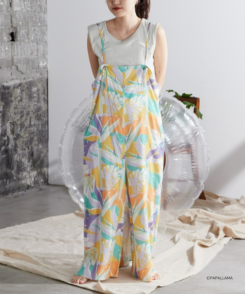 Retreat by Franklin climbingオリジナルグラフィックが目を惹くワンピースが登場■デザインアーティスト【PEPALLAMA】とのコラボレーションアイテム。配色にこだわったオリジナルの総柄で大人上品な印象に仕上がっています。前後2way仕様で、前後を入れ替えて着るとパンツスタイルとスカートスタイルのどちらもお楽しみいただけます。主役級のキャミサロペットなので、シンプルなインナーを合わせるだけでスタイリングが完成します。さらっとした肌触りの良い生地感で夏場でも快適に着用いただけます。ボリュームあるシルエットが女性らしい雰囲気に◎夏のカジュアルスタイルにおすすめの一着です。■スタイリングインナーに無地TeeやプリントTeeを合わせるのがおすすめです!足元にカジュアルなスニーカーを合わせると今年らしい着こなしを楽しめます◎■機能・COOL TOUCH(接触冷感)肌に触れた時に、「ひんやり」と感じられるような接触冷感加工を施しております■お手入れ方法洗濯:液温は40 ℃を限度とし、手洗いができるタンブル乾燥:不可アイロン:底面温度110 ℃を限度としてスチームなしでアイロン仕上げができる【PEPALLAMA】オーストラリア出身、中南米を旅するアーティスト。オーストラリア・アメリカを経て 20 年以上に渡り、旅の中で壁画やデジタルの仕事をしながら、サーフライフに合う中南米を拠点とすることを選び、現在はコスタリカをベースに活動中。PEPALLAMA にとって、旅・文化・自然・デザイン・サーフィン・写真・カラーテキスタイルおよび熱帯のすべてのものがアート作成の原点。トロピカルな土地にいることから、カラフルな熱帯の植物や動物を描くのが大の得意。私は、サーフィンができて仕事があれば、どこにでも飛んでいくわ!PEPALLAMA のカラフルで熱帯バイブスなデザインをハッピーカラーで仕上げていきます。【Retreat/リトリート】フランクリンクライミングのレディースライン。心身ともにリセット、開放する。そんな生活に寄り添う服を展開します。ヨガをベースとして、ジムにもアウトドアにも、アクティブに活動する女性に向けたブランドです。【Franklin Climbing / フランクリン クライミング】フランクリンクライミングは、1995年アメリカのオレゴン州にて誕生しました。クライミングホールドやギアの制作、販売を行い世界中のクライマーから支持を集めました。その後、本国でアパレル商品の販売を開始し、90年代後半から2000年初頭そのデザイン性からギアだけでなくアパレル商品も人気になり一躍有名になりました。2005年には大手クライミングギア会社に統合され消滅したクライミングブランドです。2021年、当時のブランドとの繋がりはありませんが、過去の技術・機能・デザイン等を参照し、様々なアウトドアシーンに最適な高機能で高感度な本格的アウトドアブランド“FRANKLIN CLIMBING”として日本にて新たにスタートしました。(商願2020-35148)気になった商品はお気に入り登録がオススメです!入荷情報や、クーポン情報が通知されるようになります。 ※画像の商品はサンプルです。実際の商品と仕様、加工、サイズ、素材が若干異なる場合がございます。