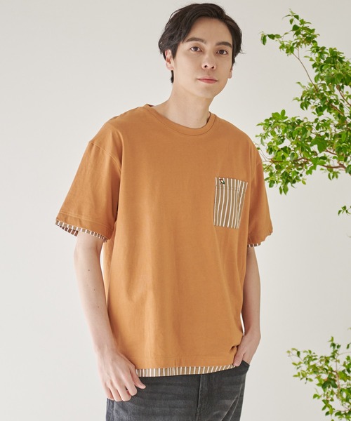 布帛とカットソー生地をドッキングさせた異素材コンビTシャツ。胸ポケット、袖口、裾口のストライプの切替デザインがさりげなくコーデを格上げしてくれます。袖と裾はフェイクレイヤード仕様になっており、シンプルながら存在感のある1枚です。メインボディーには肌触りの良い、程よく肉感のある天竺を使用。ゆとりのあるサイジングなのでリラックスして着用いただけます。一枚で様に見えるフェイクレイヤードはコーディネートの幅を広げてくれます。【Arnold Palmer/アーノルドパーマーについて】 『家族のカタチ』『繋がるキモチ』『変わらないカチ』若い人も、夫婦も、お年寄りも、お子さまも、 世代を超えてライフスタイルに寄り添える、元気で遊び心のあるファッションを。 シンプルだけど機能的、日常をより便利に、快適に、みんながハッピーに、幸せな毎日を過ごせるように。 わたしたちは、時代を超えても『価値』のあるモノづくりを追求し続けます。 ▼商品のお気に入り登録 再入荷通知や、ラスト1点、セールの通知をお知らせ致します。 ▼ブランドお気に入り登録 新作アイテムや再入荷など、いち早くブランドの最新情報をお届け致します。