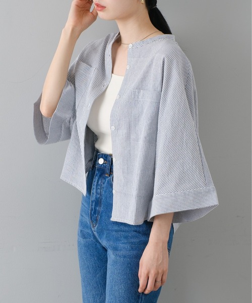 季節の変わり目に重宝する大人カジュアルなシャツ ■デザイン ダブルポケットとドルマンスリーブが特徴のシャツ。 ストライブ柄と半端袖が春~夏まで着用できるデザイン。 ■生地感 薄地で軽く、程よい透け感のコットンボイル。 ハリ感はありつつ、サラリとした手触りが特徴です。 ■コーディネート ボタンを少し開けてスキッパー風に、すべて開けて羽織にもなる万能アイテム。 インでもアウトでも決まるクロップド丈は、スタイルアップ見えを叶えます。 【B Kastane&オンラインショップ限定発売アイテム】 ファッションやカルチャーを起点とした感性で、ライフスタイルすべてを自分らしく楽しみたい方に向けたニュースタンダードを提案 ■素材・洗濯表示 素材:綿75%,ポリエステル25% 洗濯:手洗いまたは洗濯ネットに入れ洗濯機の手洗いコースで洗濯可能 タンブル乾燥:不可 アイロン:110℃まで ※サイズ採寸は各モールによって異なり、生産時期により色・素材・サイズ感など多少誤差が生じる場合がございます。 ※撮影画像はサンプル品を使用しているため、実際の商品とカラー、仕様、加工、サイズが若干異なる場合がございます。 使用しているパソコンのモニター設定や、携帯電話のメーカー・機種により実際のカラーと異なって見える場合がございます。予めご了承ください。 ▼商品のお気に入り登録 ハートマークをクリックし、お好きなカラーを選んでお気に入りに登録 完売カラーの再入荷通知や、ラスト1点の通知、セールの通知も受け取ることができます。 ▼ブランドのお気に入り登録 新商品や再入荷等、いち早くブランドのお得な情報を受け取ることができます。 <返品・キャンセルについて> ・着用・洗濯後の返品・ご交換は致しかねます。 ・商品到着後、着用前に商品を確認して頂きますようお願い致します。