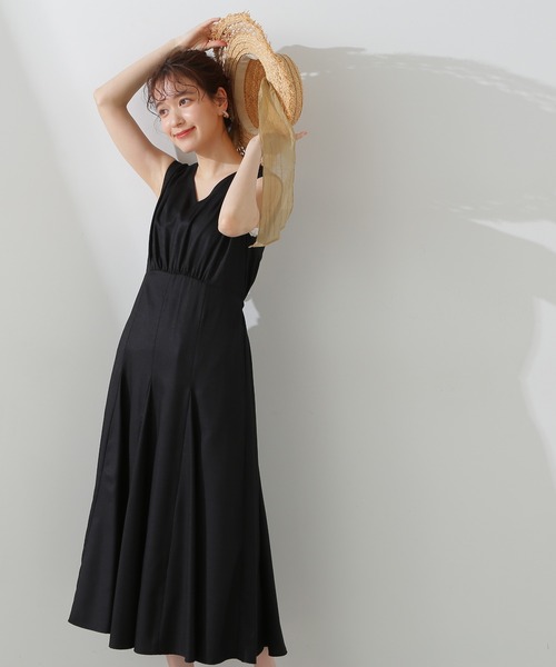ドライタッチな素材で仕立てたワンピースは、お腹まわりをすっきりまとめ、裾の途中からボリュームを出したフレアシルエットで存在感バツグンです。後ろウエストはゴム仕様と共布のリボン付きでメリハリ感をプラス。襟ぐりはVネックですっきりと、ウエストラインの切り替え位置を高くしたり、上身頃にギャザーを入れるなど、シルエット全体にメリハリがつき、スタイル良く見せてくれます。ポケット付きです。**********************透け感:なし裏地:あり伸縮性:ややあり光沢感:なし生地の厚さ:普通**********************●取り扱いについては、商品についている品質表示でご確認ください。●撮影はサンプル商品で行っている為、仕様とサイズが異なる場合がございます。●スタジオ及び屋外で撮影した着用画像は、光の当たり具合やご覧のモニターによって色味が違って見える場合があります。予めご了承ください。●生産時期により色・素材・サイズ感など多少異なる場合がございます。予めご了承ください。≪お買い物をよりお楽しみいただくために≫・「商品のお気に入り登録」再入荷通知や、ラストの通知、セール通知も受け取ることができます。・「ブランドのお気に入り登録」新商品や再入荷など、お得な情報を受け取ることができます。