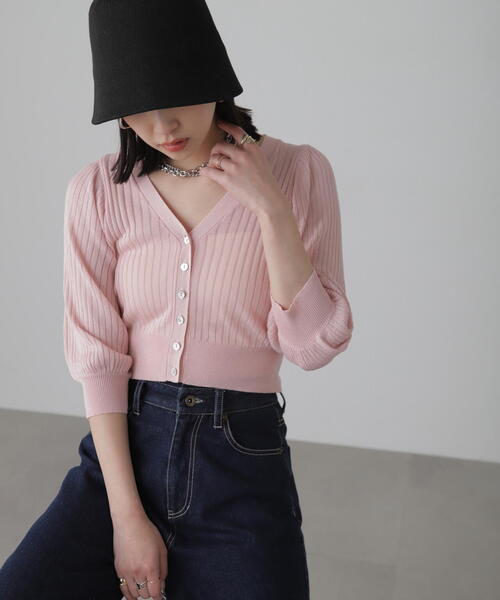〔fabric&design〕ドライタッチのシアーなリブカーディガン。軽く清涼感があり、サラッとした肌離れの良い素材感が特徴です。1枚あると真夏の冷房対策としても重宝する一枚です。ピンク、ブルーが今シーズンの新色です。〔styling〕ベーシックな形なので合わせやすく、ジャンスカやキャミワンピの上に羽織っても◎。■透け感:ややあり■生地の厚さ:薄手■裏地:なし■伸縮性:あり■光沢:ややあり■シルエット:スタンダードmodel:骨格ウェーブ---------------------------------------------------◆商品のお気に入り登録◆お気に入りアイテムの値下げ・再入荷・在庫1点などの通知を受け取ることができます。◆ブランドのお気に入り登録◆新商品や再入荷、セール、クーポン配布などお得な情報を受け取ることができます。---------------------------------------------------※ご注文いただいた予約商品のお届け時期の確認は、注文履歴ページより行えます。