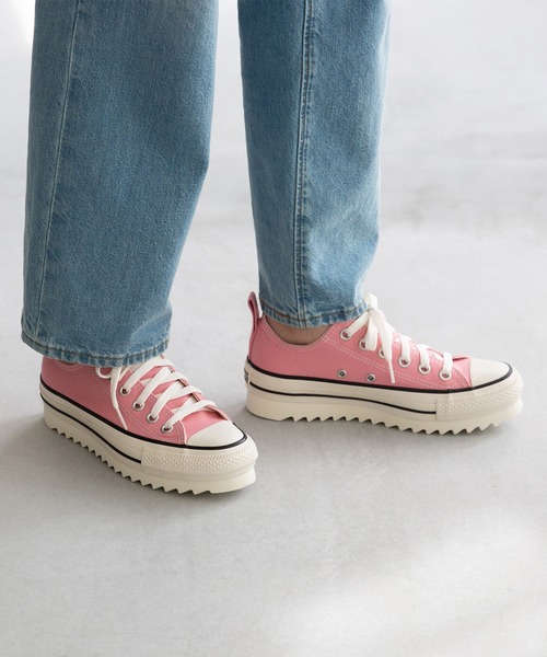 コンバース『ALL STAR(オールスター)』 ワードローブを新鮮にするシャークソール CONVERSE(コンバース)の代名詞とも言える、100年に渡り世界中で愛され続けているシリーズ。 シンプルでスラッとしたシルエットに、厚めのシャークソールが目を惹く1足。 履くだけでおしゃれに仕上がります。 <ポイント> 1.ローカットとハイカットから選べる! ローカットはボトムスから靴下や肌をチラ見せできてコーデに抜け感を持たせられ、ハイカットは足首まで覆うのでフィット感が良く、存在感がありコーデをまとめてくれます。 ★ハイカットver.はこちら ⇒ 問い合わせ番号:83194573 ( 上記番号を商品検索に入力してください。) 2.厚底Xシャークソールがコーデのワンポイントに 普段のスニーカーでは出せない、目を惹くデザイン。 足元にボリュームの出る厚底に、シャークソールのデザインだから履くだけでおしゃれな印象に。 3.シンプルなディテールにさり気ない遊び心 ローカットはシュータンに、ハイカットは内側にネームをデザインすることで、シンプルなディテールの中にさりげない遊び心をプラス。 4.衝撃をしっかり吸収!クッション性◎インソール インソールにはクッション性の良いEVA(合成樹脂)素材を使用。弾力性が高く、地面からの衝撃をしっかり吸収してくれます。 5.滑りにくくて安心なアウトソール アウトソールは摩擦力の高い合成ゴム素材を使用。凹凸の溝が地面に引っかかり滑りにくくて安心! ============= ◆サイズ選びに困っていませんか? \スタッフが試着してみました!/ ▼もりん / 普段サイズ:22.0cm【E】 選ぶサイズ⇒22.5 22.5は足幅にゆとりがあり足長はピッタリ。つま先捨て寸約15mm。22.0は指の側面がやや当たるので選ばない。つま先捨て寸約10mm。 ▼はまさん / 普段サイズ:23.5cm【2E】 選ぶサイズ⇒24.0 24.0はつま先捨て寸約10mm。23.5はつま先捨て寸約5mm。幅は靴紐で調整できるが、私の足は幅が少し広めでコンバースは長時間履くと親指と小指の付け根が痛くなるので1サイズ大きめを選ぶ。 ▼きっちん / 普段サイズ:24.0cm【D】 選ぶサイズ⇒24.5 24.5は足幅がややキツいが問題ない程度。つま先捨て寸約10mm。25.0は足長が緩い。 ※足の形には個人差があります。スタッフ試着感想は参考程度にお考え下さい。 ============= ◆アイテムスペック ▼サイズ 【22.0cm】 足長:24.0cm/足幅:8.0cm 【22.5cm】 足長:24.5cm/足幅:8.2cm 【23.0cm】 足長:25.0cm/足幅:8.4cm 【23.5cm】 足長:25.5cm/足幅:8.6cm 【24.0cm】 足長:26.0cm/足幅:8.8cm 【24.5cm】 足長:26.5cm/足幅:9.0cm 【25.0cm】 足長:27.0cm/足幅:9.2cm 【25.5cm】 足長:27.5cm/足幅:9.4cm 【26.0cm】 足長:28.0cm/足幅:9.6cm 【26.5cm】 足長:28.5cm/足幅:9.8cm 【27.0cm】 足長:29.0cm/足幅:10.0cm 【27.5cm】 足長:29.5cm/足幅:10.2cm ※細心の注意をはらい採寸をおこなっておりますが、手作り商品の為、製造段階で個体差が生じます。参考程度にお考え下さい。 ヒールの高さ:約4.0cm 素材:合成繊維 片足重量:約420g ============= 【機能性】: すべりにくい 痛くない 歩きやすい 疲れない 疲れにくい 【シーン】: フェス デート おでかけ お出かけ カフェ ショッピング 買い物 屋外 外履き デイリー 日常 普段使い 日常使い 普通履き 【デザイン】: ALL STAR オールスター スニーカー ベーシックスニーカー ローカットスニーカー ローカット 短靴 レースアップ 紐あり 紐 シューレース カジュアルシューズ シャークソール 厚底 ボリュームソール 【おすすめカラー】: 白 ホワイト 黒 ブラック 桃色 ピンク 赤 レッド ※生産時期により、色合い、風合い、質感に差が生じる場合があります。