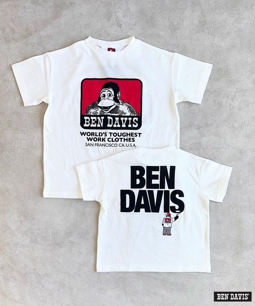 【マーキーズ別注アイテム】 ワークウェアで有名な"BEN DAVIS"のTシャツが登場! 一目でわかるフロントのイラストが印象的な1枚。 こだわりのバックプリントも目を引きます。 ワイドシルエットでゆったりした着用感。 1枚でインパクトのあるコーデが仕上がる万能トップスです。 [BEN DAVIS] アメリカを代表するワークブランド"BEN DAVIS(ベン・デービス)"は1935年にカリフォルニア州サンフランシスコ市で創業しました。ワークテイストを取り入れたい10代~20代後半の男性、そして、アメリカンカルチャー、アメリカンカジュアルが好きな人々から強い支持を集めています。 タフで朽ちないワークウェアの素材感、ティテールまでこだわったデザインと、今の時代にあったサイズ感、トレンドを融合し、着こなしやすい商品を展開しています。