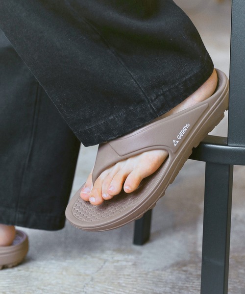 ▼商品説明 足の負担を軽減してくれる、高機能サンダルです。 通常のサンダルやスニーカーに比べ、優れた衝撃吸収性を持つクッション性の高いソールを採用。足を包み込むようなフィット感と優しい履き心地が魅力で、立ち仕事やランニング後のたまった疲労を癒してくれます。元々アスリート向けに作られていたため、機能性は抜群。さらに普段使いしやすいスタイリッシュなデザインで夏の定番サンダルにぴったりの一足です。 素材には軽量で耐久性の高い材質のEVAを採用。ゴムと似た素材で、柔軟性と弾力性を持つため、足に優しい履き心地です。ビーチサンダルのような形状で、親指と人差し指の間でホールドできる安定感のあるタイプ。開放感のある涼し気な印象を作り出し、素足でサッと気軽に脱ぎ履きできるデザインです。 カラー展開は当店企画カラーのモカと、ベーシックなブラックとアイボリーを加えた3色をご用意。モカは肌なじみがよく、どんなスタイリングにも合わせやすいカラーリングです。豊富なサイズ展開のユニセックス仕様のため、男女お揃いで履いていただけます。ちょっとしたお出かけにすぐに履けて疲れにくい、1つは持っておきたい高機能なアイテムです。 ― GERRY(ジェリー) ― 生誕から半世紀以上という長い歴史を持つアメリカンアウトドアブランド。苛酷な環境に対応するアウトドアウェアのノウハウを基盤にし、ストリートのトレンドを融合させたアウトドアカジュアルウェアを展開しています。 ▼着用スペック モデル足サイズ:27cm|着用サイズ:27 (モカ一部画像のみ)モデル足サイズ:26.5cm|着用サイズ:26 ▼素材 EVA ▼ご注意 ※商品の色味につきましては、ご利用のPC、スマートフォンのモニタ環境により実際のカラーと画像の色味が違って見える場合がございます。あらかじめご了承の上、ご注文ください。 ※商品特性、縫製や素材により同サイズでも、若干の誤差が生じてしまうことを予めご了承ください。 ※生産過程におきまして、1cmから2cm程度のサイズ個体差が生じる場合がございます。※サイズ表はメーカー採寸数値を記載しております。 【お買い物をお楽しみいただく為に】 ▼商品のお気に入り登録 完売カラーの再入荷通知や、ラスト1点の通知、セールの通知も受けることができます。 ▼ブランドのお気に入り登録 新商品や再入荷等、いち早くブランドのお得な情報を受け取ることができます。