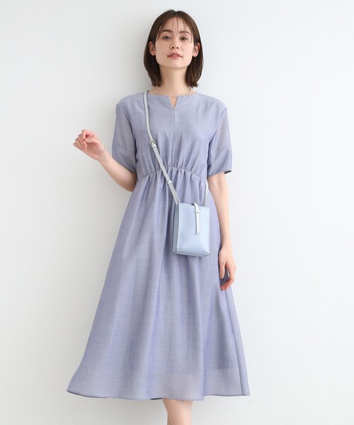 【デザインポイント】夏らしいエアリーな素材を使用したハイウエストワンピースです。高めのウエストラインなので腰高で脚が長く見えます。ウエストはゴムでギャザーを入れているので着やすく、ゆとりもあるので夏に涼しく着用いただけます。やや長めの袖丈で、さりげない袖コンシャスデザインです。衿はすっきりとしたキーネックです。※ポケットなし【スタイリングポイント】ジャケットと合わせた通勤スタイル、ブルゾンと合わせたトレンドスタイル、ニットカーディガンを合わせた休日スタイルと幅広く活躍します。ギャザー感のあるデザインで長めの袖丈なので、夏に1枚でも着映えします。【素材ポイント】シルキーな光沢のある風合いが特徴のローンになります。スパンタッチの優しい着心地に、シワになりにくいイージーケア性を兼ね備えた素材になっております。※袖以外裏地あり※裏地のない部分はやや透け感があります。※照明の関係により、実際よりも色味が違って見える場合があります。また、パソコン・スマートフォンなどの環境により、若干製品と画像のカラーが異なる場合もございます。【生地詳細】透け感:ややありbr>伸縮性:なし生地の厚み:普通裏地:あり洗濯方法:洗濯機洗い可モデル情報:身長167cm B79 W59 H87 着用サイズ:38(M)店舗へのお問い合わせ商品番号:127-58002●製品寸法:03(XXXS):着丈104cm B88cm 裄丈43cm W72cm05(XXS):着丈106cm B91cm 裄丈44cm W75cm13(LL):着丈118cm B113cm 裄丈52cm W94cm15(3L):着丈118cm B117cm 裄丈53cm W98cm19(5L):着丈119cm B125cm 裄丈54cm W106cm36(S):着丈114cm B98cm 裄丈46cm W79cm38(M):着丈116cm B101cm 裄丈47cm W82cm40(L):着丈118cm B104cm 裄丈48cm W85cm備考:
