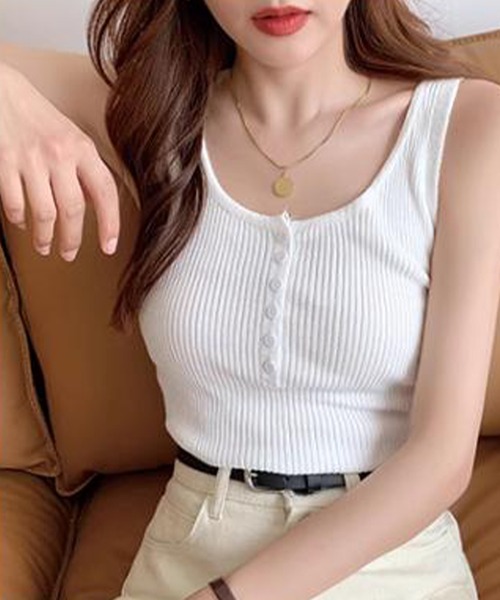シンプルで着回し力抜群なキャミソールタンク ■おすすめ着用シーズン: 春服 夏服 ■生地感:薄手で柔らかいリブ編み生地 ■伸縮性:よく伸びる ■透け感:ホワイト・ベージュのみ透け感あり ■裏地:なし ■ポケット:なし ■仕様:フロントボタンは飾り(開け不可) ※平置き採寸になります。若干の誤差が生じる場合がございます。 ※輸送時による、多少の汚れ・シワがある場合がございます。 ※撮影時のライティング、ご覧になっているモニター・PC環境により実際の商品と色味が異なって見える場合がございます。ご了承の上お買い求め下さい。