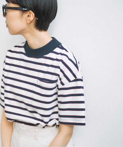 めずらしい配色が新鮮なマルチボーダーの半袖Tシャツ。 着るだけで気分の上がるPOPなカラーをチョイス。シンプルな中にもこなれたバランス感が光るモックネックの首元で、暑い時期にさっと着るだけでもさまになります。すっきりとしたシルエットなので野暮ったくならず、裾をボトムに入れてもスマートに着ていただけます。 素材はポリウレタンが入っていることで、軽くてシワになりにくいのも嬉しいポイント。ご自宅でのお洗濯も気兼ねなく出来てデイリーに着られるトップスです。デニムやカーゴパンツでカジュアルなスタイリングはもちろん、ベスト合わせやノースリーブのワンピースのインナーとして重ね着のスタイリングもおすすめです。 ----------------------- 透け感:なし 裏地:なし 伸縮性:ややあり 光沢感:なし ----------------------- 【素材の特性・お取り扱いの注意】 ・取り扱いの注意については取り扱い表示をよくご確認の上、着用をお願い致します。 ・汗や雨等でぬれた場合、摩擦などにより色落ちし、他の衣料に移染することがありますので取扱いにご注意下さい。 ・お洗濯の際、多少の縮みや斜行する場合がありますので、できるだけ手洗いをして形を整えてから日陰干しして下さい。タンブラー乾燥はお避け下さい。 ※撮影画像は、光の当たり具合やモニターの環境により色味が違って見える場合があります。あらかじめご了承ください。