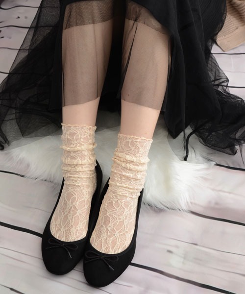 繊細なレース素材のソックス、履くと上品な足元に! 3色展開なのでデイリー使いに◎ 薄くて軽量で通気性も良いため、足が蒸れにくく快適に履くことができます。 【サイズ】 FREE(約22〜25cm) 【recommend】 こちらは”float”のレギュラーアイテムになります。在庫が無くなっても再入荷の予定が御座います。 在庫が切れていましたら”ハートマーク”のお気に入り登録をお願い致します。 アプリのお知らせ通知なら再入荷・在庫1点などをお届け致します。 【float】 コーディネイトに取り入れやすいシンプルなデザインで、 リーズナブルなアイテムをセレクトしています。
